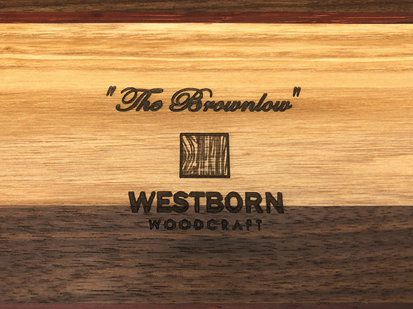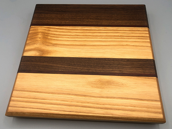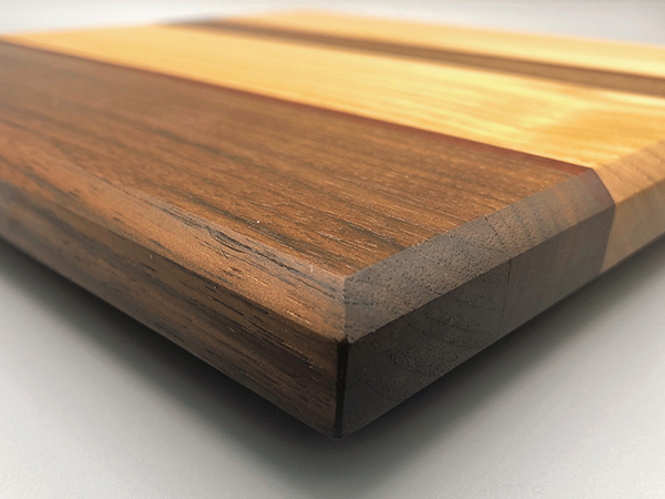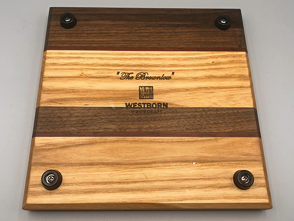 The Brownlow - A small but equally handsome addition to our Dickens Collection. At 23 cm square it is compact but sturdy and fit for purpose. Chopping, slicing, dicing and serving. Designed and handcrafted using hardwoods of Maple and Walnut with slivers of Utile for an extra shot of colour. It stands on food safe rubber feet keeping it off your surface while protecting the underside of your board.