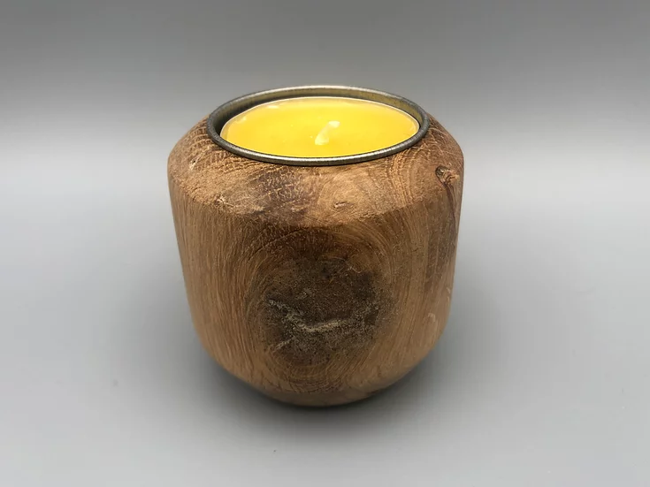 Stunning little Oak candle holder. Hand turned in our workshop, sanded and finished with a natural mineral wax oil.