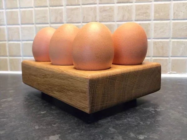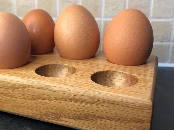Store your eggs on your worktop in this lovely handcrafted oak holder. This egg holder holds six eggs—a beautiful addition to your kitchen storage.