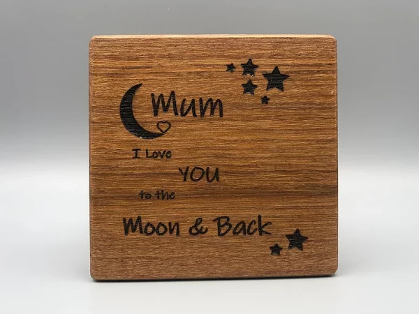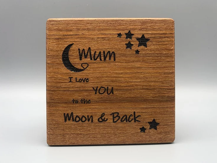 Our handcrafted hardwood coasters can be laser engraved with a variety of designs. We can also personalise the back of your coaster. The perfect gift for any occasion.