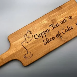 High-quality handcrafted Oak. These handsome boards will look as good on your dining table as they will in your kitchen. Better still, for serving up a mouth-wateringly scrumptious cream tea (no matter how you make it, Devonshire or Cornish..!)Our thick boards are strong, sturdy and stunning, fitted with rubber/PVC food-safe feet with stainless steel inserts and screws. All our boards are finished with food-safe organic food-grade mineral oil and natural beeswax. Small but perfectly formed. This lovely Oak board is a useful size without taking up too much space. Plenty of room to chop up those vegetables or slice fruit for that summer punch.